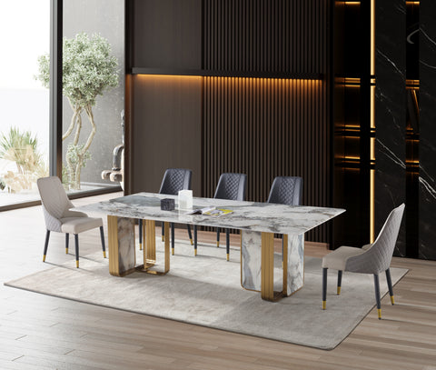 Real Marble Dining Table w/ Marble Gold Stainless Leg